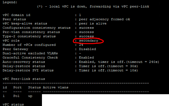Aynı portchannel numaraları olmalı ve VPC PEER-LINK komutunu kullanmalısınız’ki VPC hangi portun PEER-LINK olduğunu öğrensin