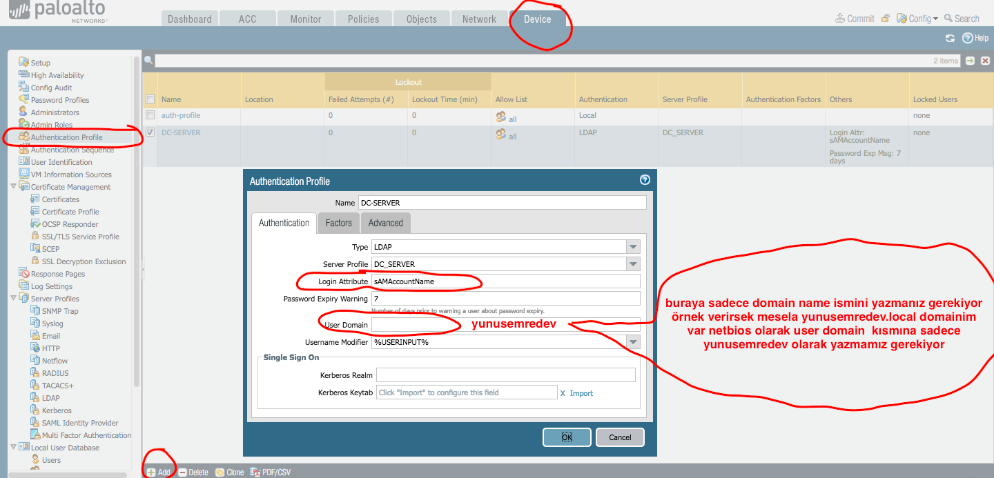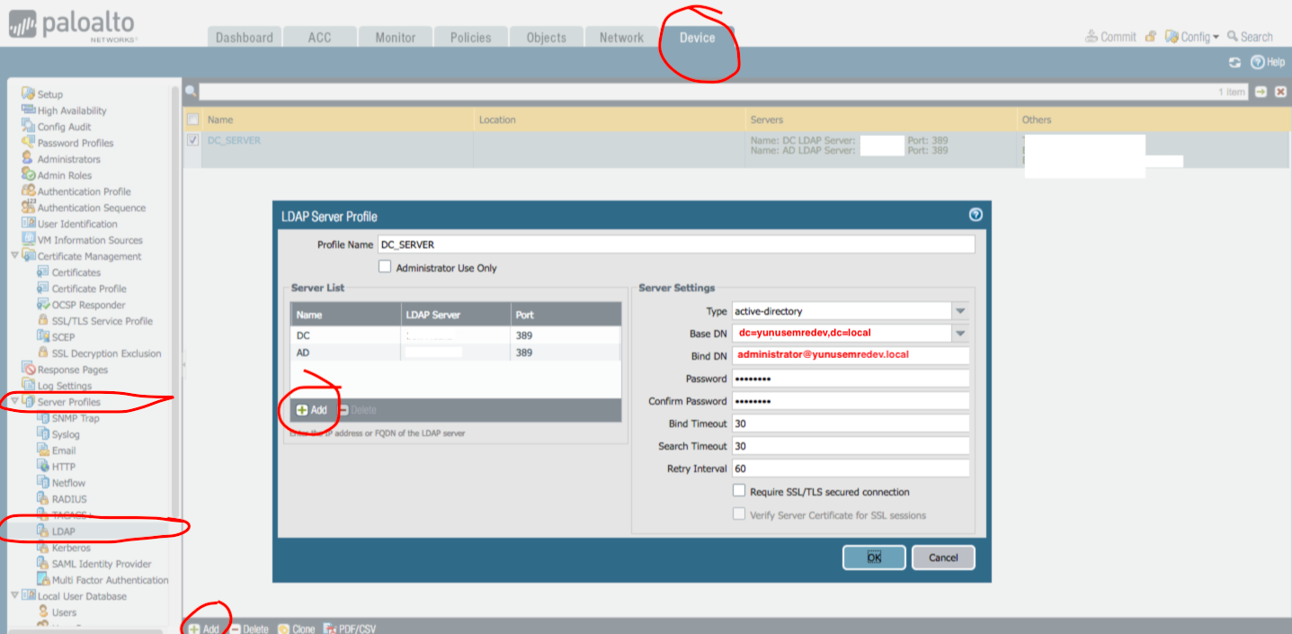 SERVER PROFİLE- daha önce LDAP kısmında oluşturduğumuz profile seçiyoruz,