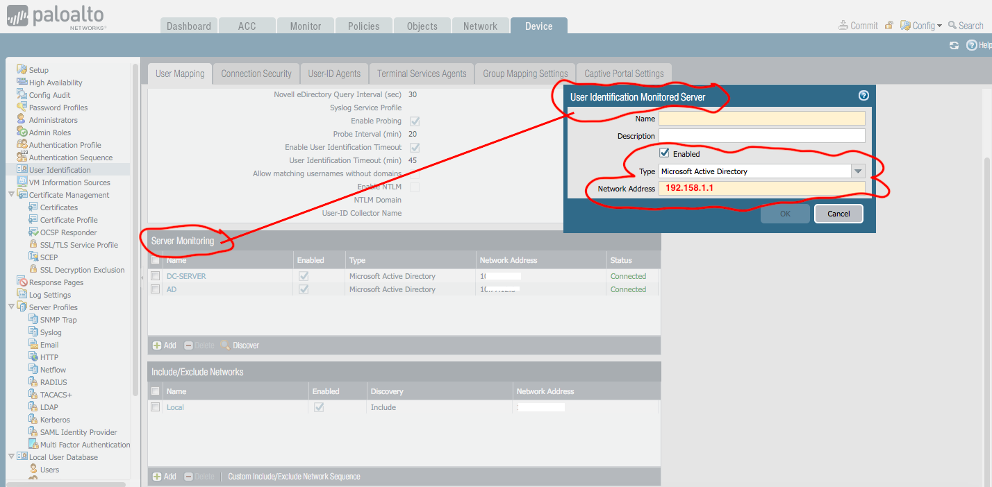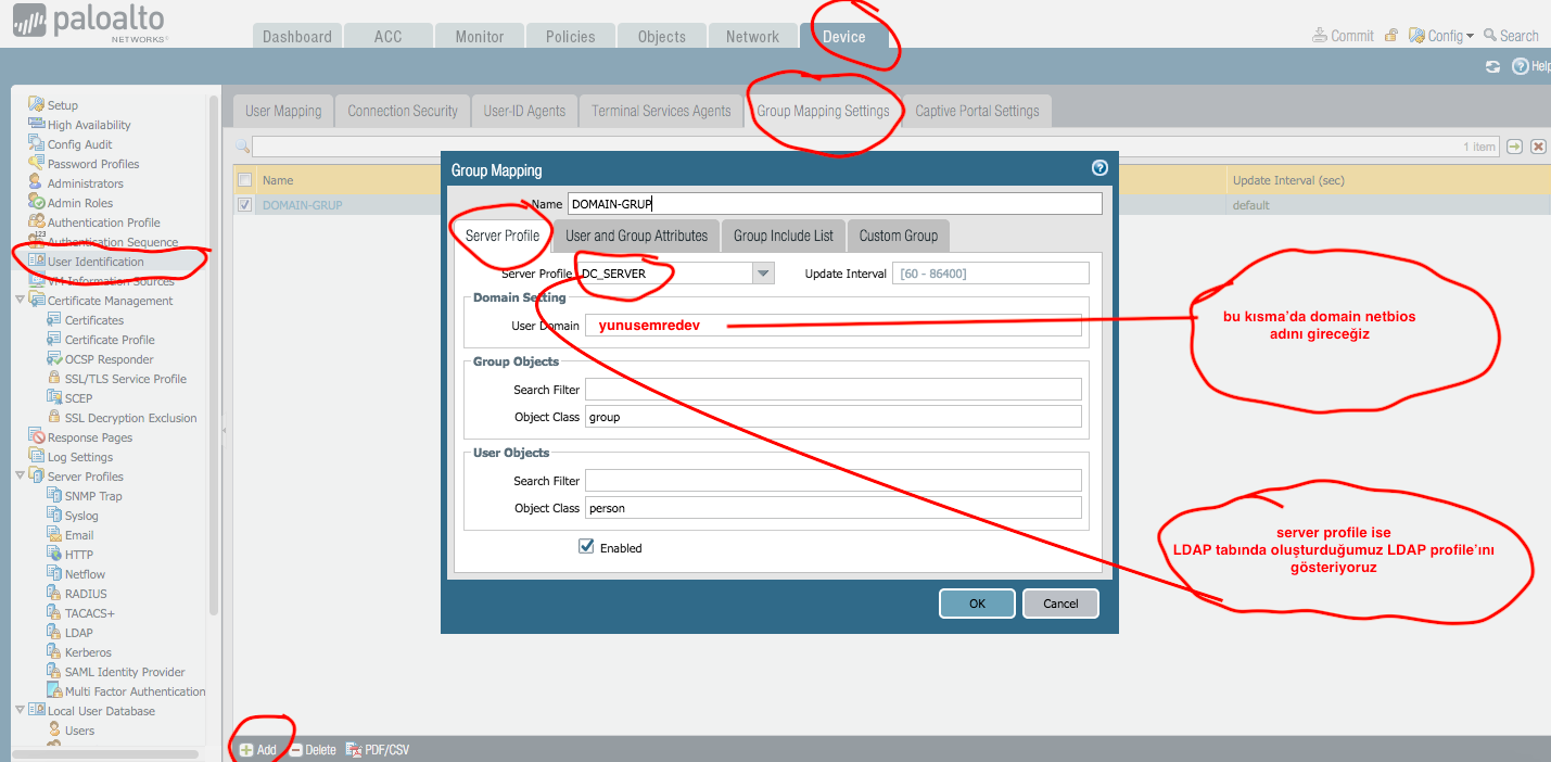 Öncelikle DEVICE-USER İDENTİFİCATİON tabında USER MAPPİNG ayarlarını yapalım