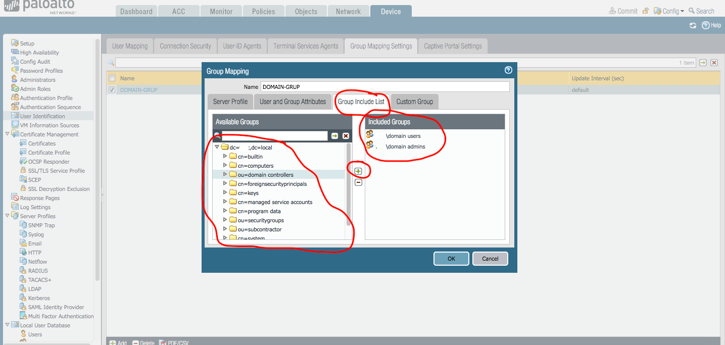 GROUP İNCLUDE LİST kısmında AVALİABLE GROUPS’ta OU gelmiş olacak içerisine bağlanıp