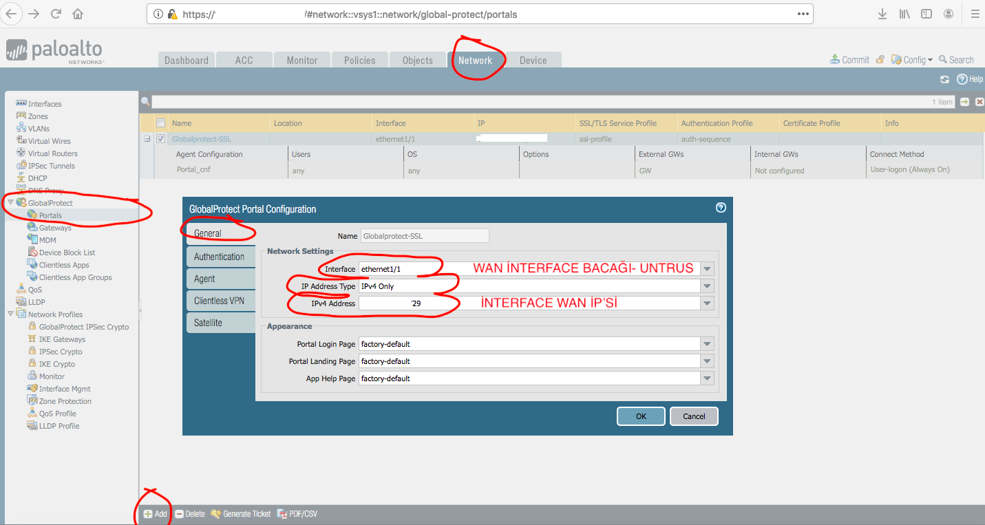 NETWORK-GLOBALPROTECT-PORTALS’tabları